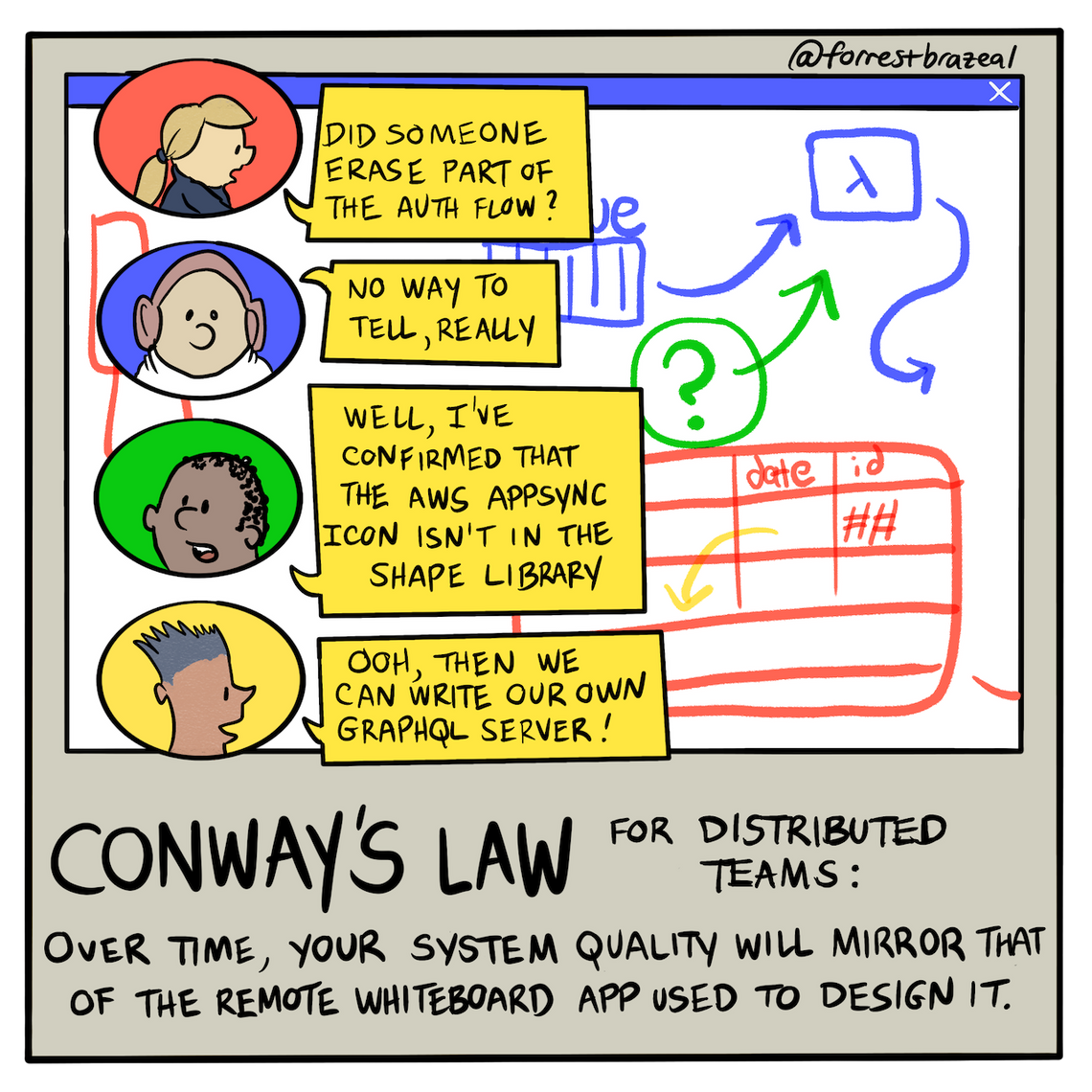 Conway's Law for Remote Teams Log into your GT2 Pro account to download a high-res version of this image that you can use royalty-free anywhere: Subscribe below to get comics and more in your inbox: